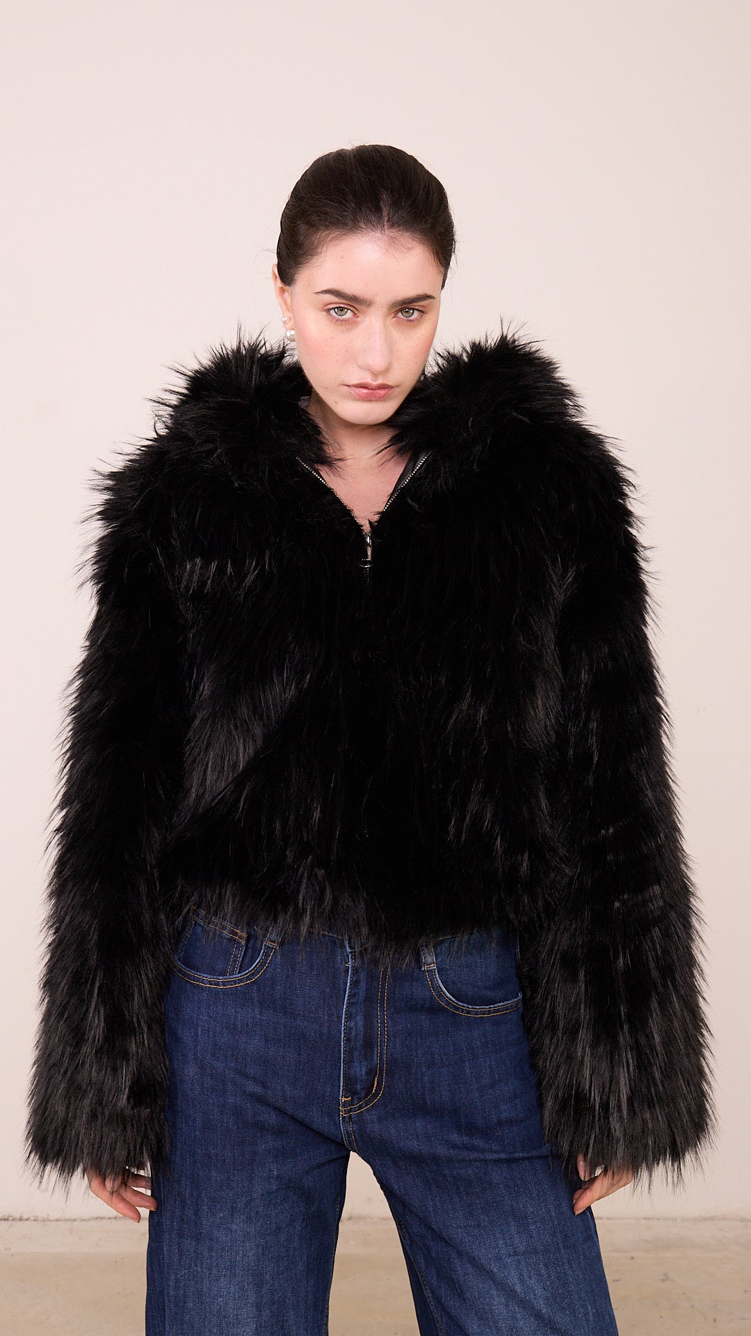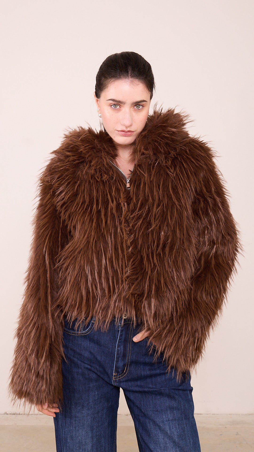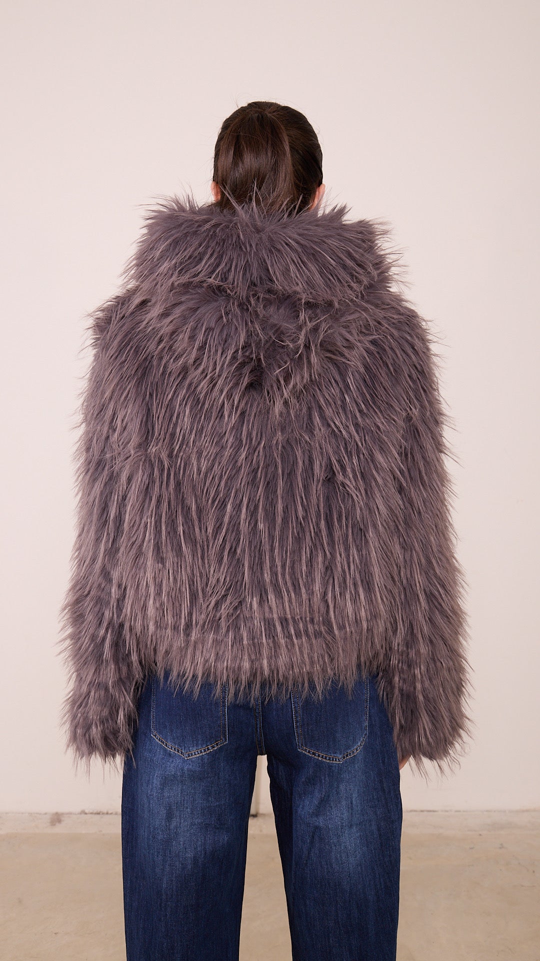 Pelliccia ECO Pronto moda Donna taglia UNICA a zip intera con cappuccio