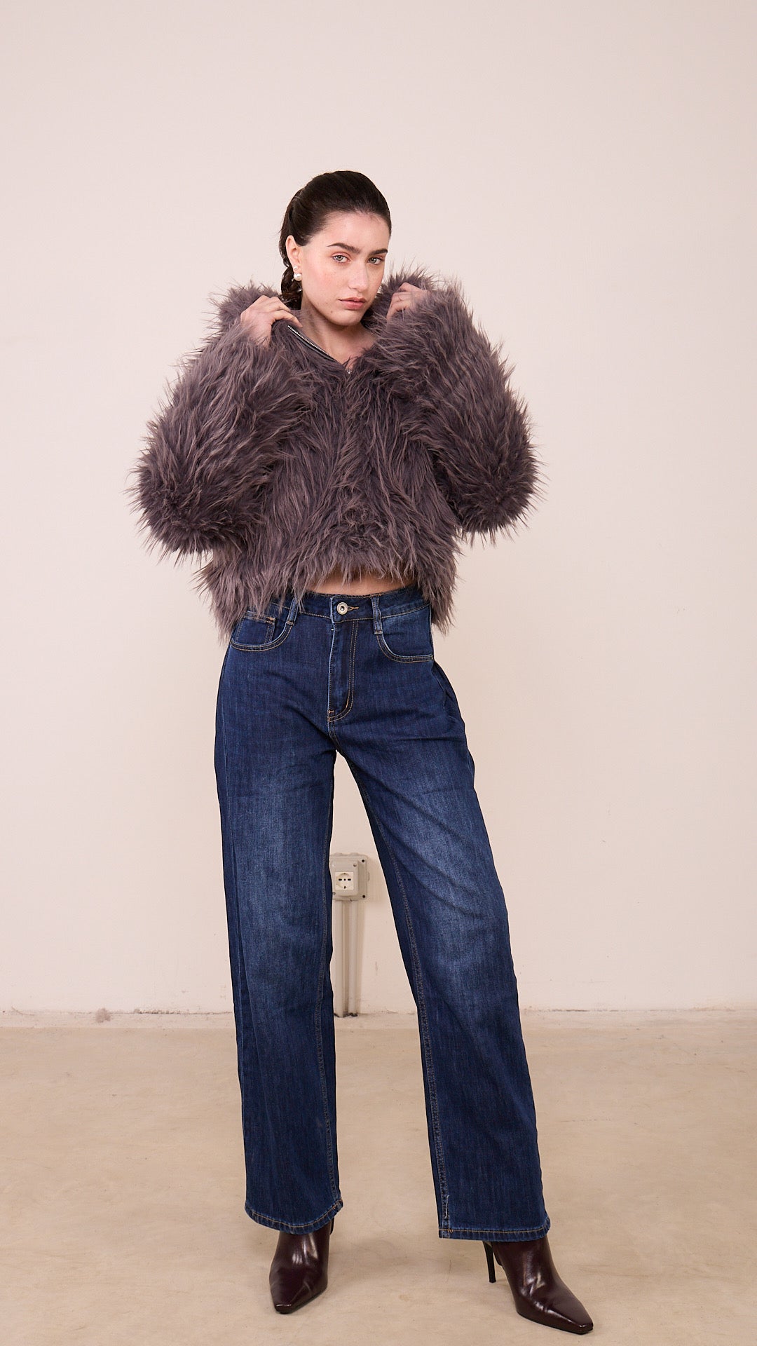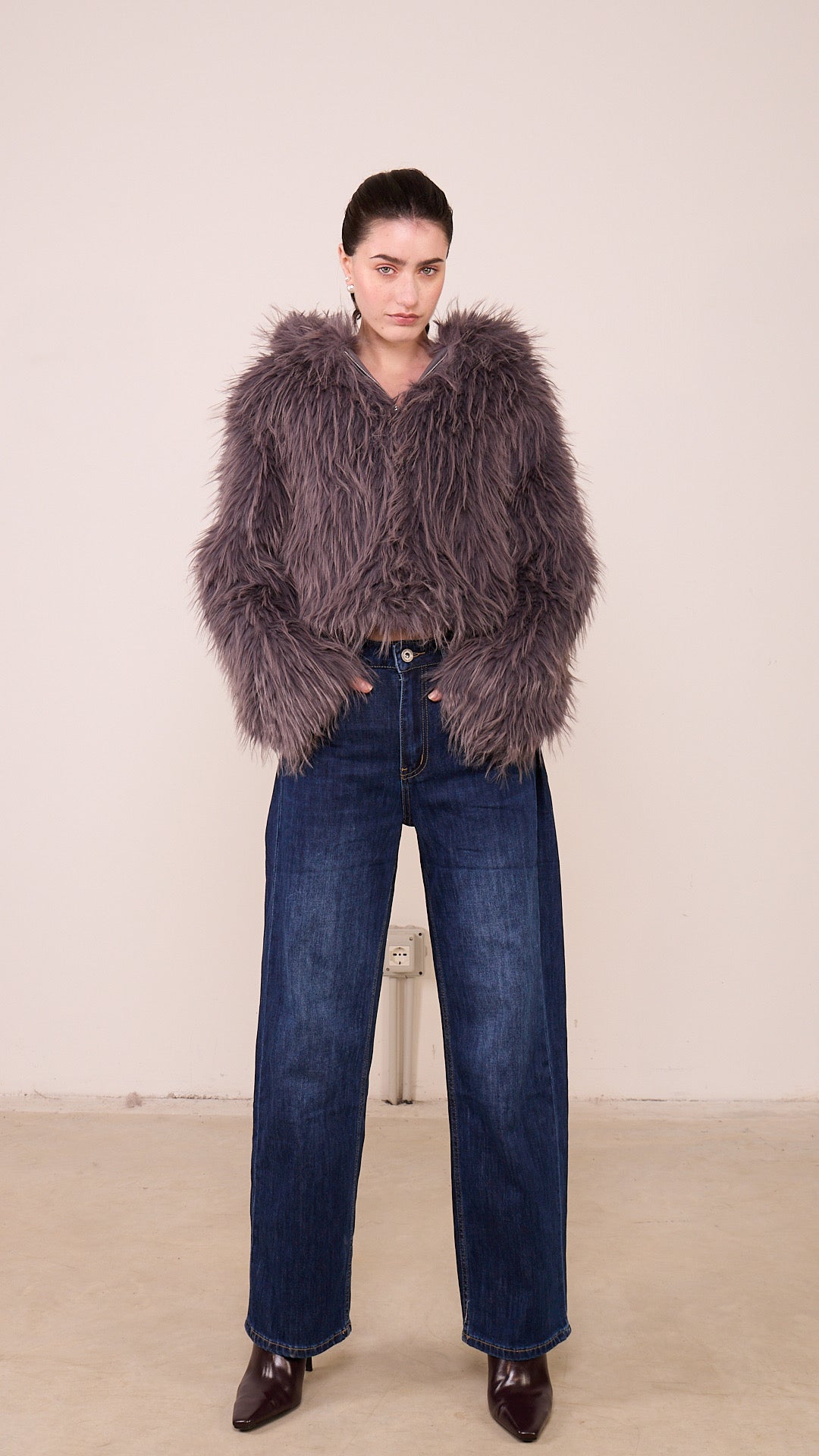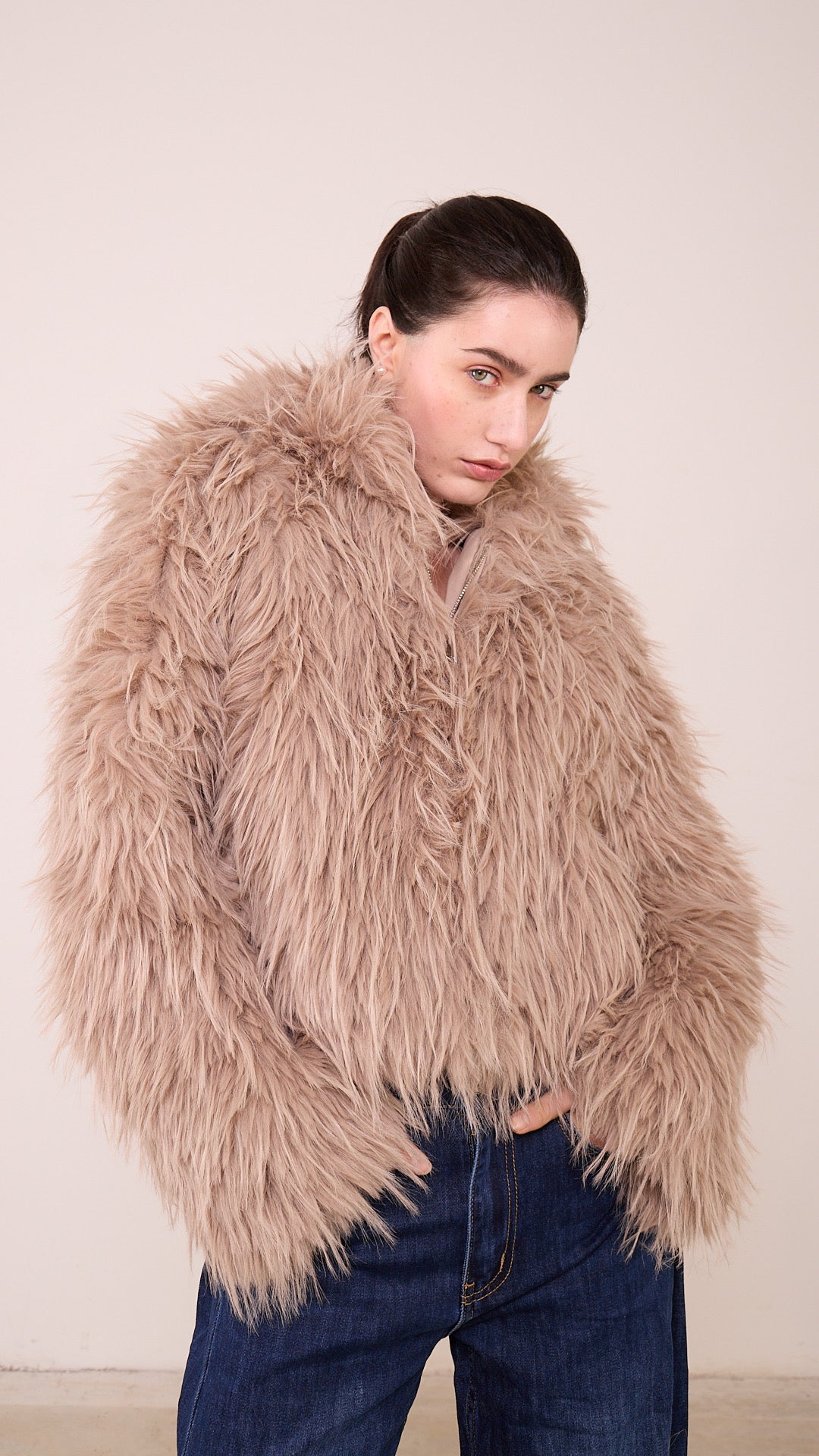 Pelliccia ECO Pronto moda Donna taglia UNICA a zip intera con cappuccio